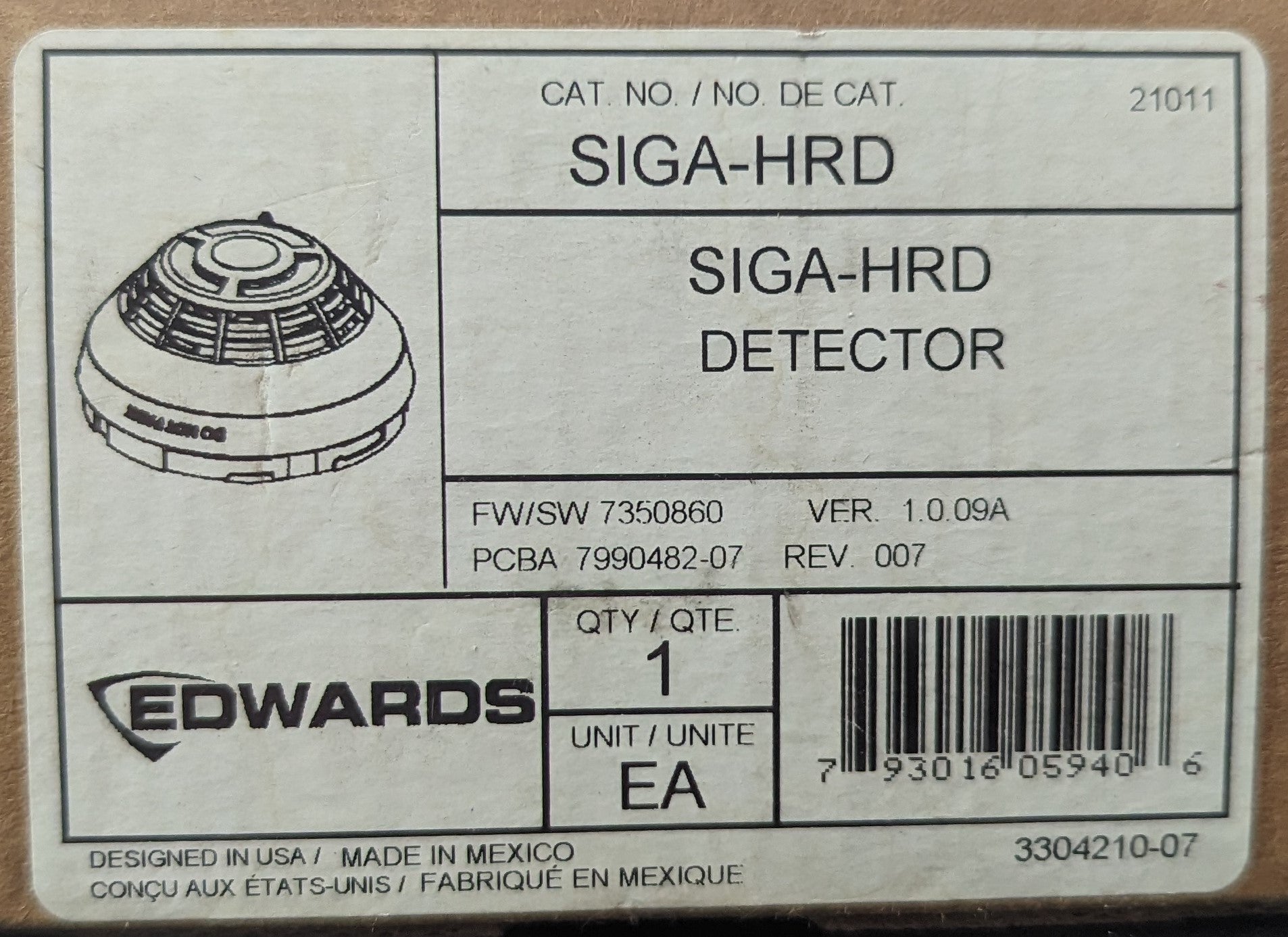 The SIGA-HRD is an intelligent fixed temperature/rate-of-rise fire detector. It monitors the temperature of the surrounding air and analyzes the data from the sensor to determine whether to initiate an alarm. The rate-of-rise heat function quickly detects a fast, flaming fire. The fixed-temperature heat function detects fire when the air temperature near the detector exceeds the alarm point.