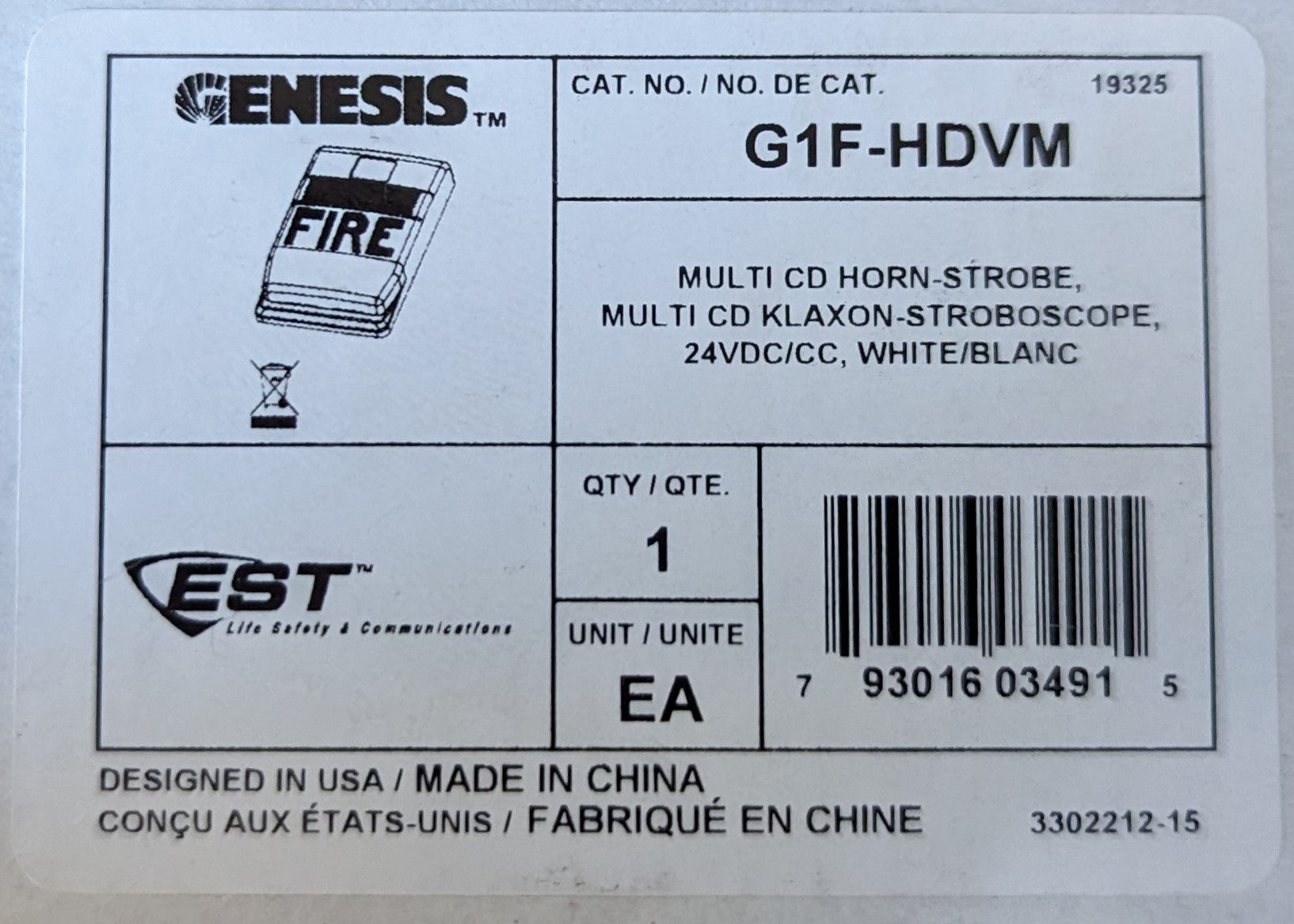 Edwards Genesis G1F-HDVM Speaker Strobe