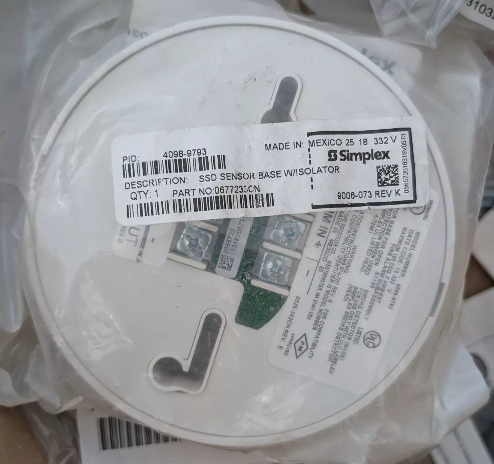 Simplex 4098-9793 SSD Sensor Base with Isolator