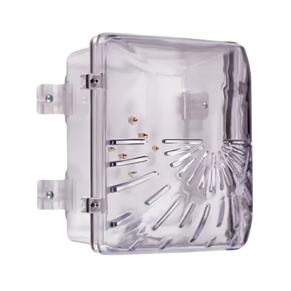 This virtually indestructible cover (slotted for sounder/strobe unit) is specifically designed to prevent vandalism and accidental damage to a signal unit of a fire alarm system. Moulded in clear, thick UV-stabilised polycarbonate material with slots allowing the sounder or fire voice speaker to be heard. There are a variety of spacers available to accommodate larger sounder/strobe units and retrofits - as well as weather resistance and surface mounted applications. Spacer B has a solid back and is moulded with an integral mounting box. For extreme conditions where dampness, water or dust are frequently present, we recommend using STI’s unique, new Enviro Kit.