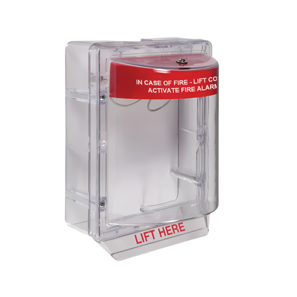 The Stopper II consists of a clear, tamperproof, tough polycarbonate cover and frame that retrofits over the break glass call point. When lifted to gain access to the break glass, its optional battery powered integral sounder emits a piercing 95 dB or 105 dB (at 1 metre). Immediate attention is drawn to the area and the prankster will either run or be caught.